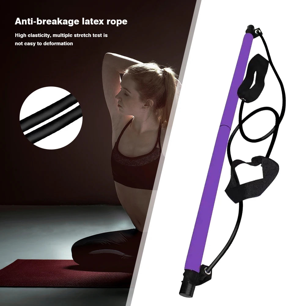Constructed from durable steel with a lightweight design, the yoga pilates stick features a removable bar for simple storage and versatile use. The resistance band is crafted from high-quality latex, ensuring eco-friendliness, no unpleasant odors, and excellent resilience. Its sturdy build makes it resistant to deformation, providing a reliable workout companion for years to come.